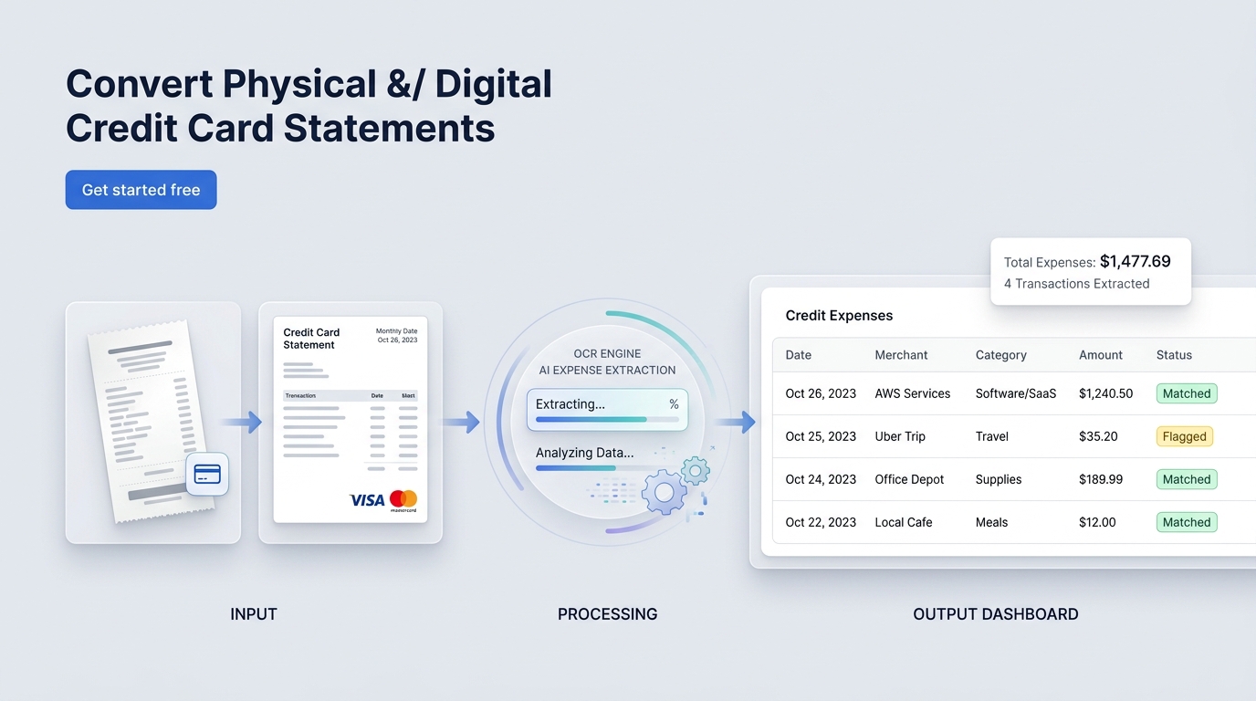 Convert credit card statements into clean, structured expense data for bookkeeping, analysis, and accounting workflows — no manual entry required.